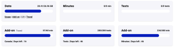 The "My plans" section show how much of everything are remaining in my plans, except for the wallet: