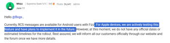RCS messaging is currently supported for Android users on Fizz. We don’t yet have an official release date or timeline. Once more information becomes available, we’ll share updates on our website and in the forum.