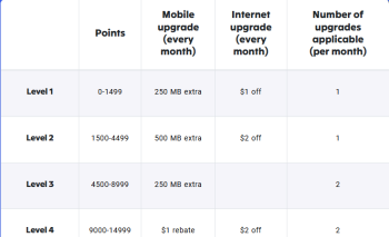 So it looks like it is better to stay at level 1 with 250+500 mb, especially since I don't have home internet.