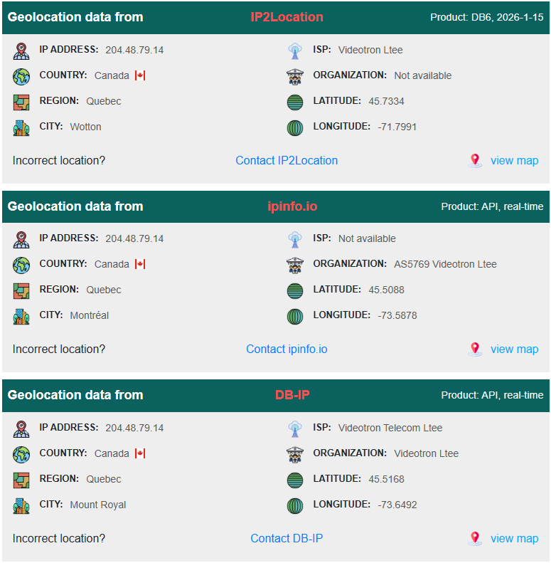 The problem is that on Fizz mobile data, you will always be geolocated in Québec, no matter where you are in the country. For example, I am in Toronto. And yet, geolocation is showing me in Wotton, Montréal or Mount Royal (well, I guess, that is also in Montréal), all in Québec.