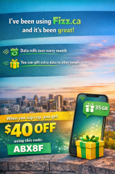 Hurry up to activate your first Fizz plan and get a 40$ (25$ in Quebec) bonus by using my referral code: R7VK1
