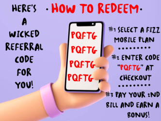 Here's my referral 👉 ****PQFTG**** 👈 I signed up with Fizz using one of the codes listed, so feel free to use mine! ****PQFTG**** to get the best mobile and internet plans :) 👍
