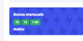 Quand je clique sur la récompense d'un 1% les cadeaux s'animent et bougent, mais je reçois aucun message qui indique le 1$ s'appliquera sur ma facture. Par contre, si j'active 24 heures de données illimitées, je reçois un message qui s'affiche en rouge qui m'indique , le tout est activé. Merci