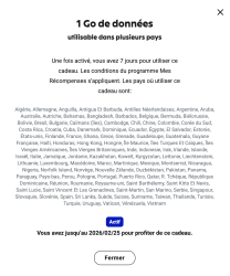 Question concernant cadeau " 1 Go de données utilisable dans plusieurs pays "