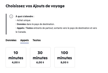 Vous pouvez faire un ajout de minutes pour votre voyage dans le pays que vous visiterez. Vous pourrez alors appeler en République Dominicaine ainsi qu'au Canada avec ces minutes. Selon ce que je vois, vous pouvez acheter 100 minutes pour 8$, 30 minutes pour 6$ et 10 minutes pour 4$. Rendez-vous simplement dans la section "Mon Forfait" et faites un ajout Voyage dans le pays de votre choix.