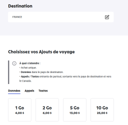 Les ajouts voyage sont utilisables dès leur achat et sont actifs jusqu’à la fin du prochain cycle de paiement. Bref, s’il reste 10 jours au cycle de paiement en cours, l’Ajout sera valide pour 40 jours.